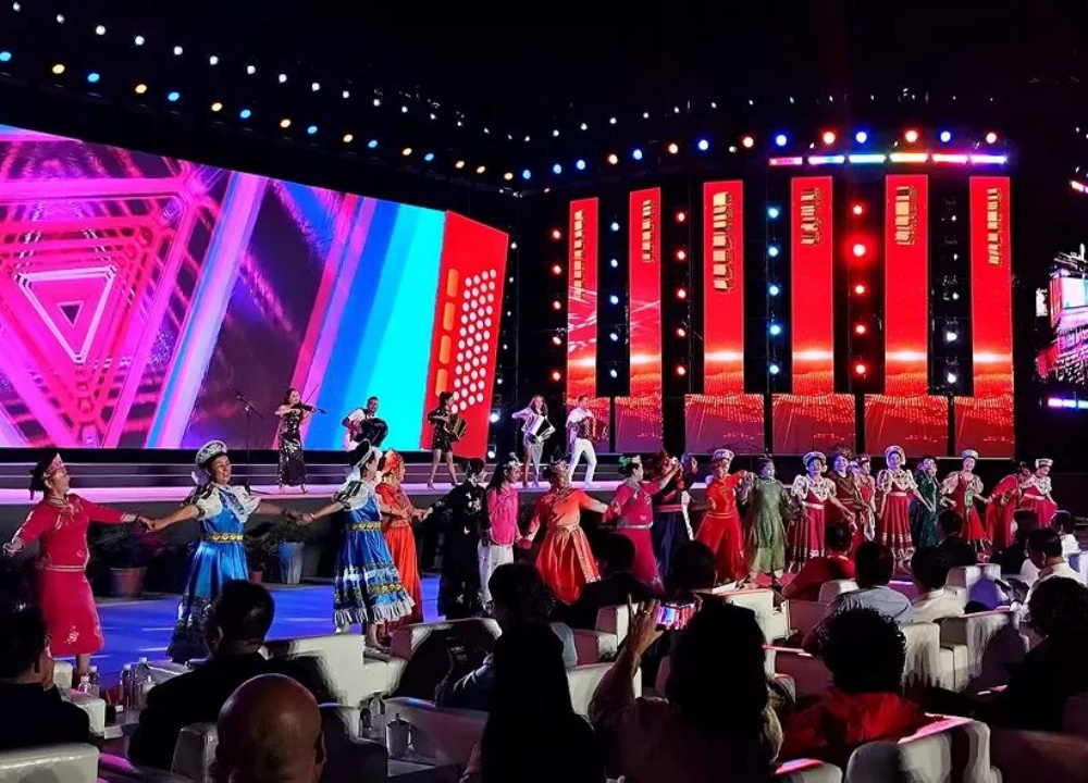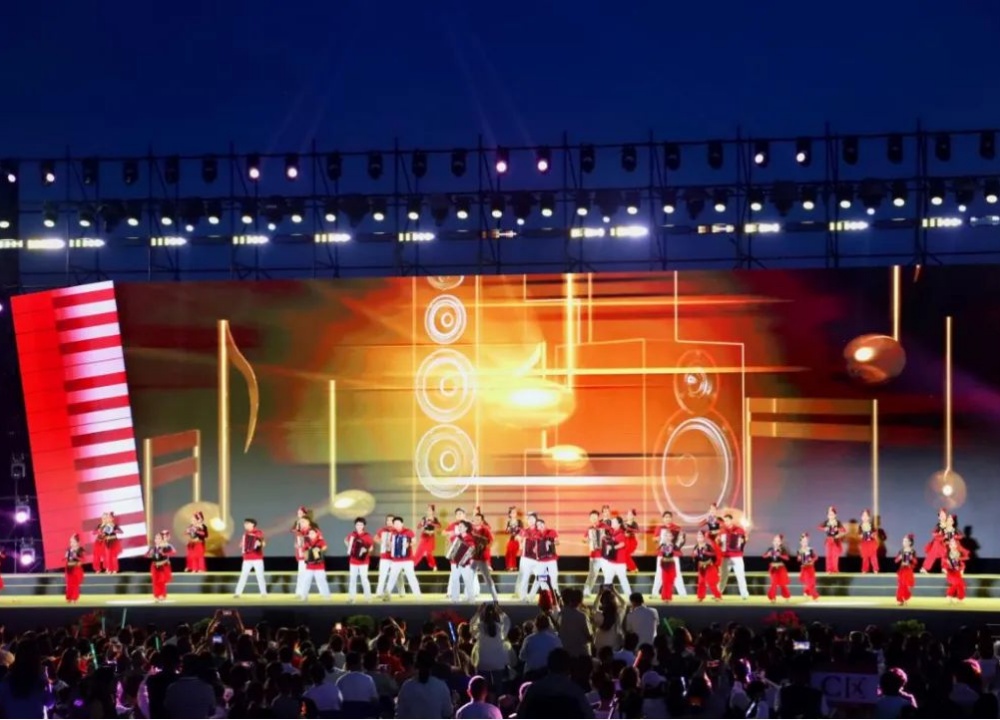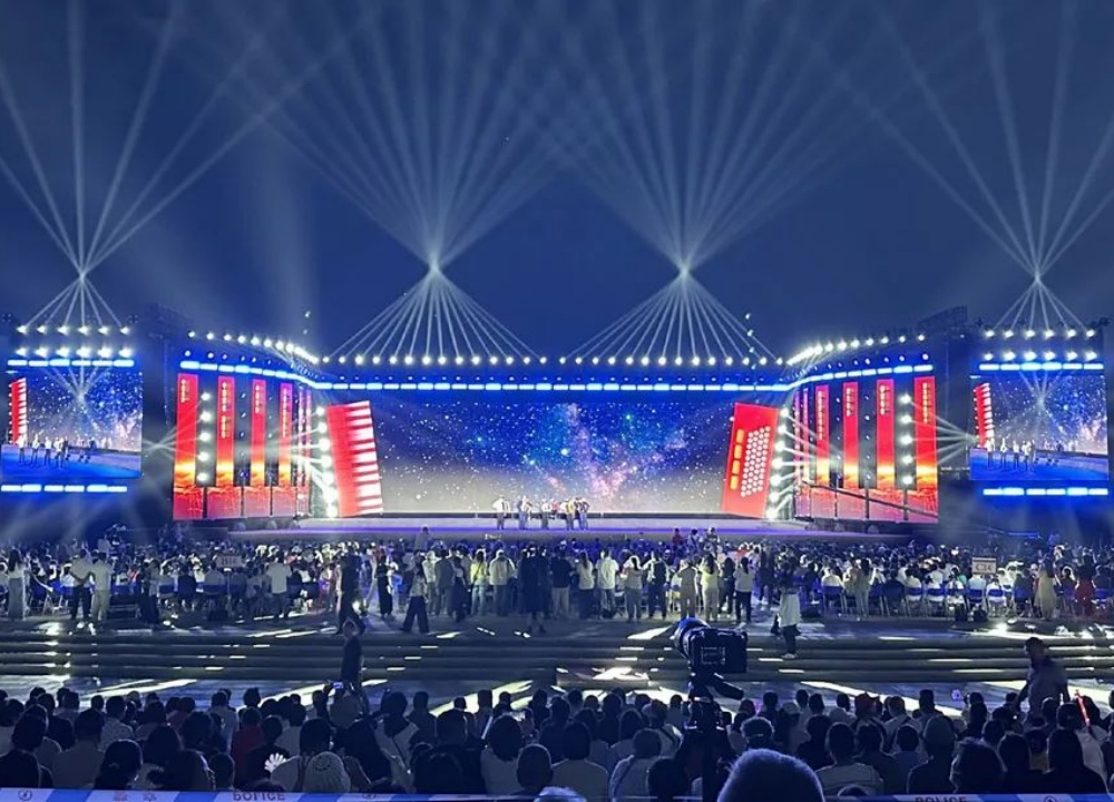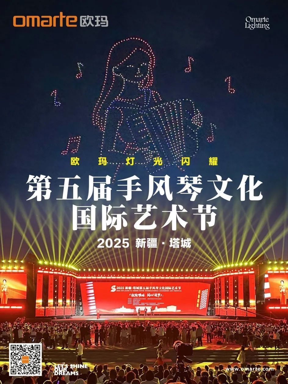 开幕式文艺表演中,100台欧玛防水摇头染色灯与200台防水光束灯大放异彩,和手风琴演奏交相辉映,为现场观众打造出一场视听盛宴
