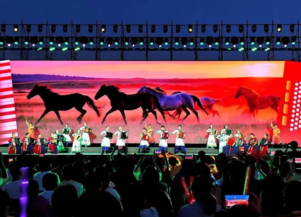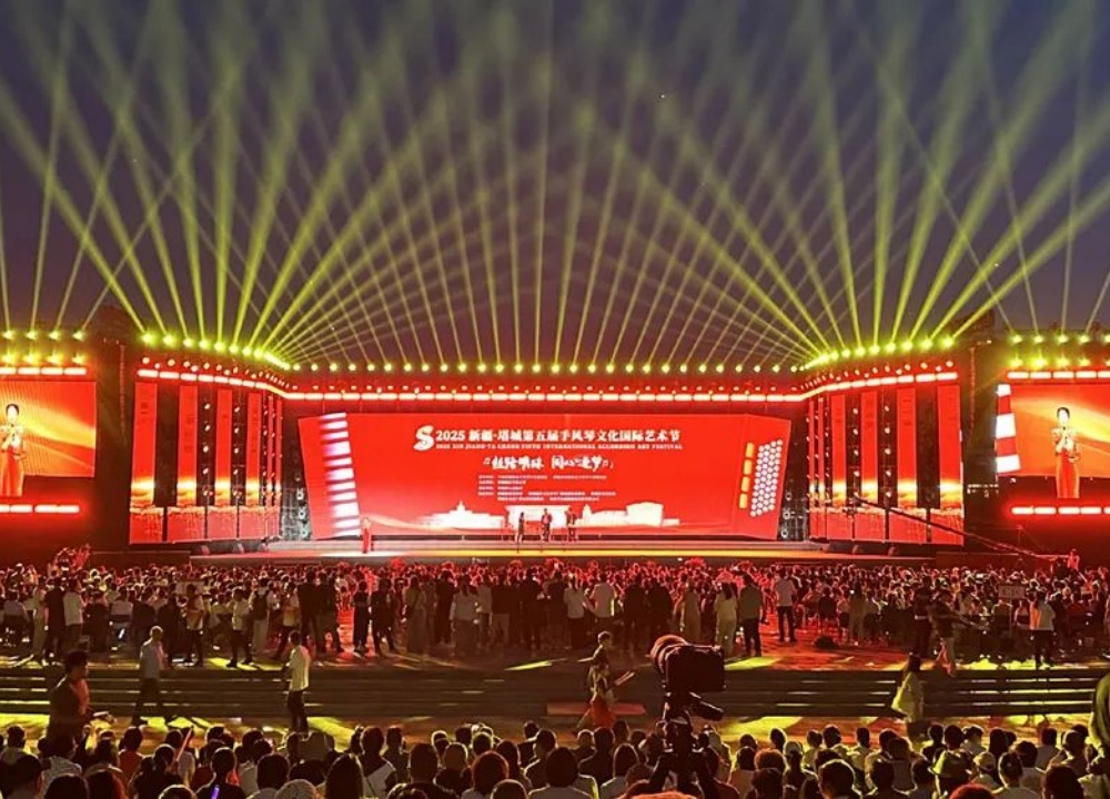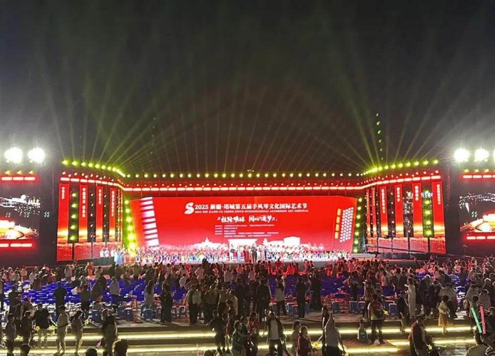 8月16日晚,新疆塔城千泉湖畔热闹非凡,2025新疆·塔城第五届手风琴文化国际艺术节盛大开幕。