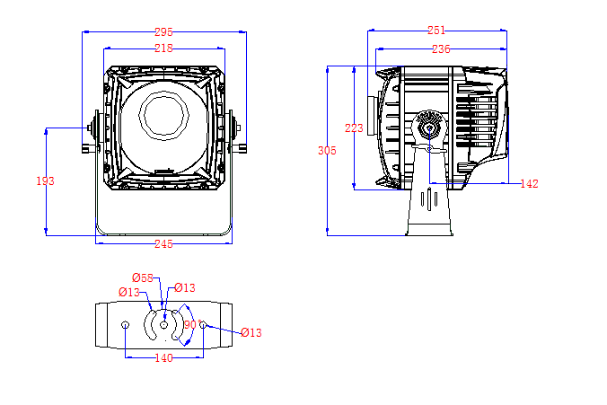 Dimmer: 0 ~ 100% electronic linear dimming.