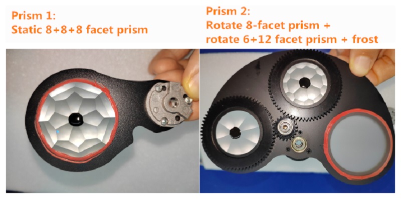 Prism 2: rotating 8-facet prism + 6+12-facet prism + frost; two prisms can combine together;